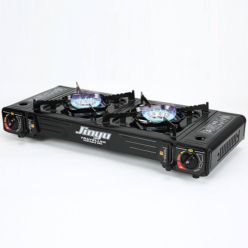 Jinyu fogão a gás ao ar livre, moderno, 2 queimaduras, acampamento portátil, fogão a gás butano